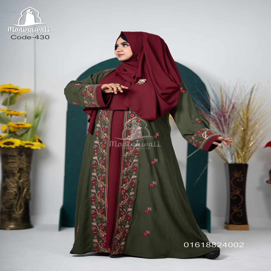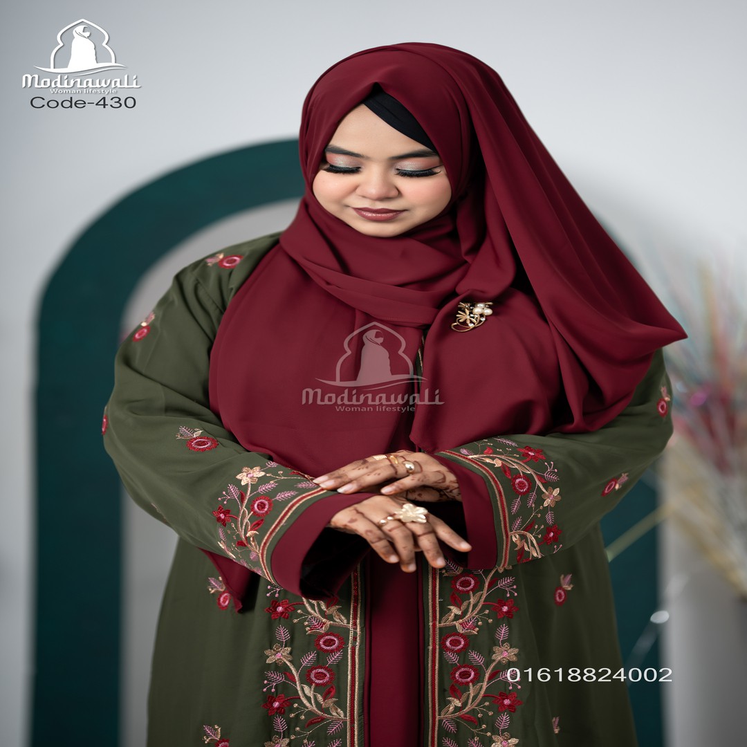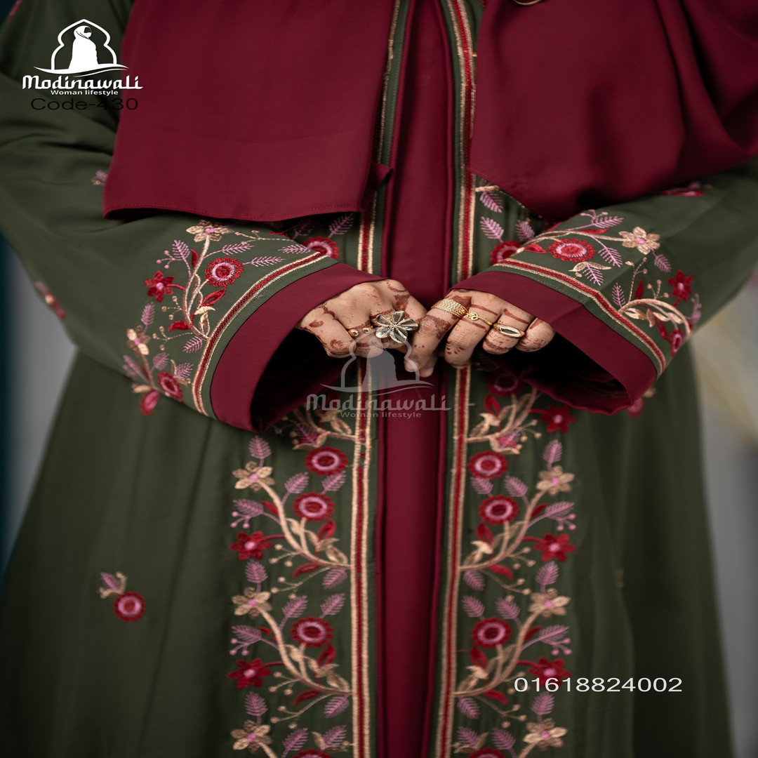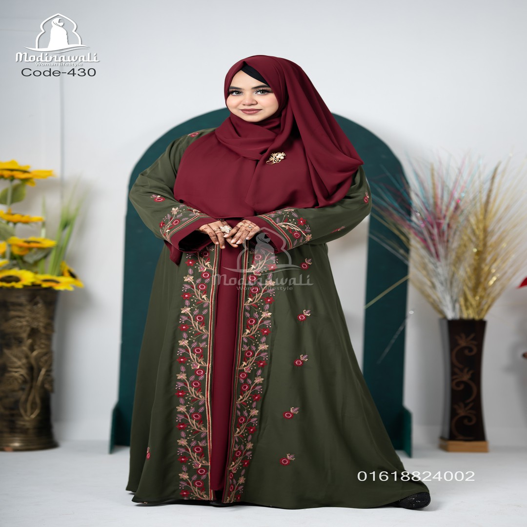 ✔ ফ্লোই লং বোরকা – রিয়ারে ফুল এমব্রয়ডারি ডিজাইন