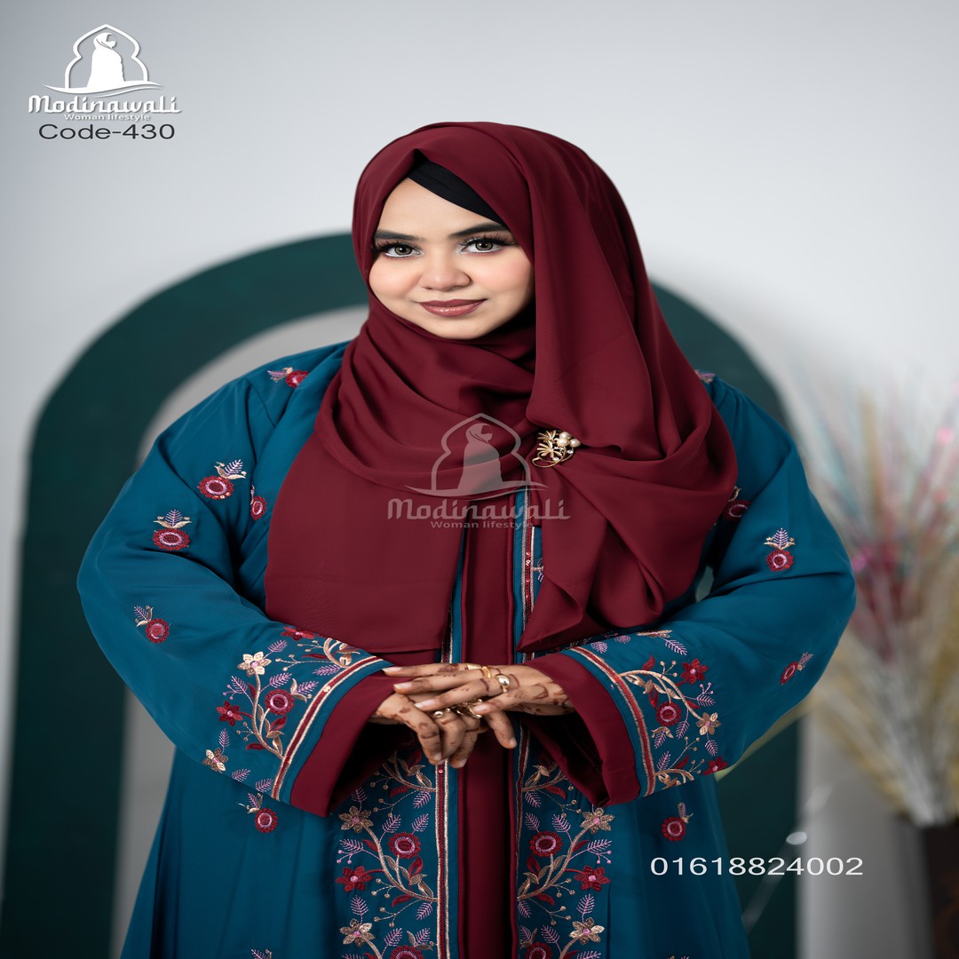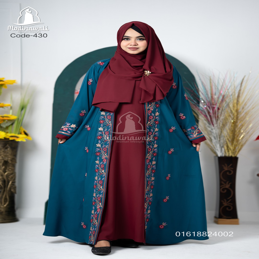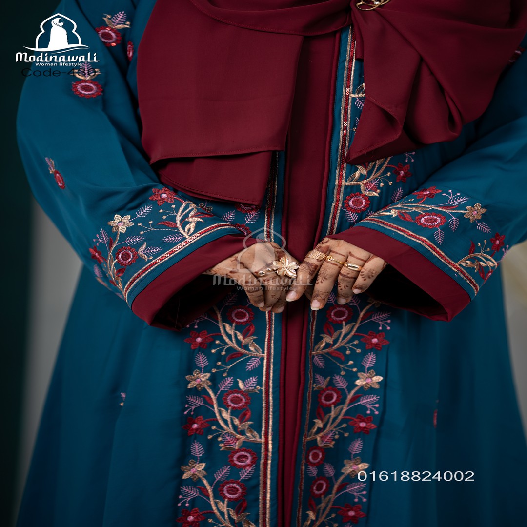 ✔ ফ্লোই লং বোরকা – রিয়ারে ফুল এমব্রয়ডারি ডিজাইন